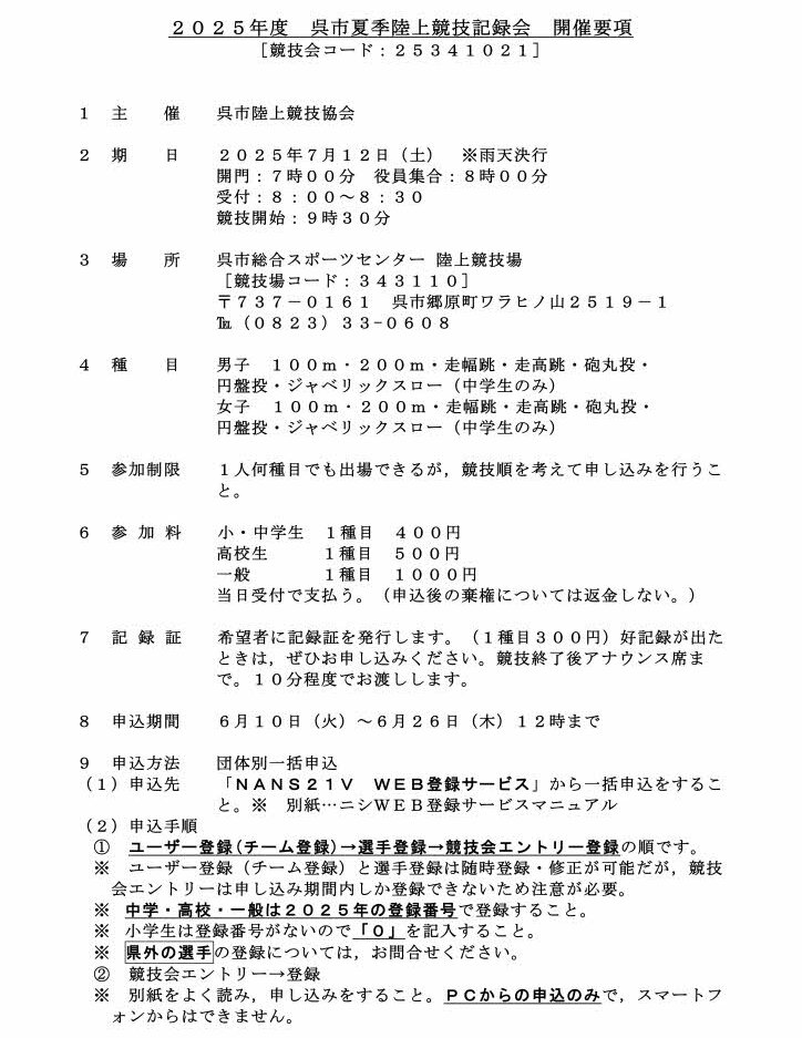 役員構成エントリーリストタイムテーブル今年度、8月から移動してきました 呉地区高等学校選手権の1日目と同日に行います呉地区高等学校選手権2日目競技会要項XBluesky 投稿ナビゲーション6/7・8 呉市陸上競技選手権記録 7/12 呉市夏季記録会記録