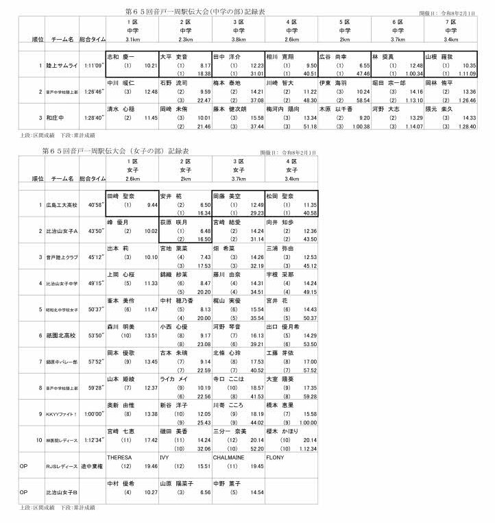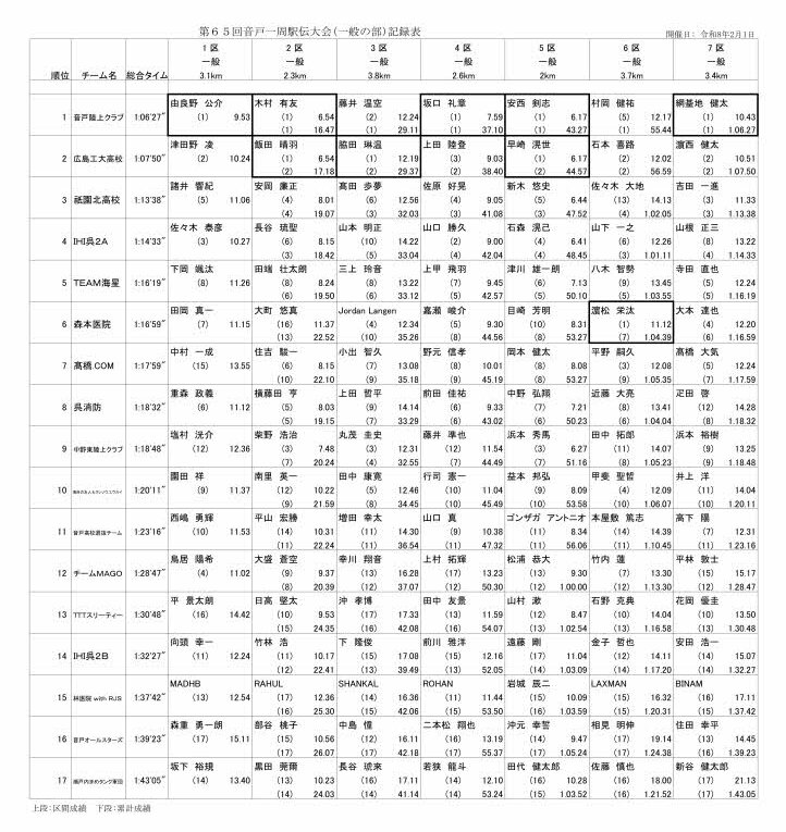 1 市呉高 1:27:14 濱本 中村 曾我 石田 玉置 内尾