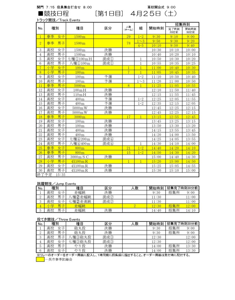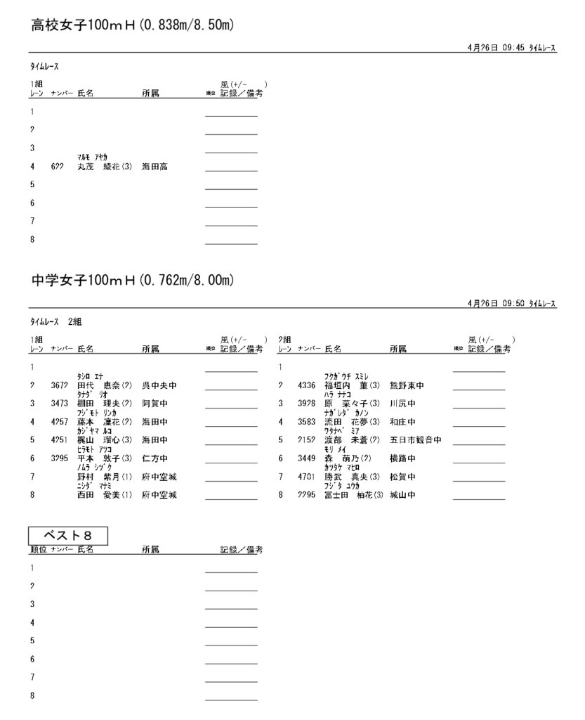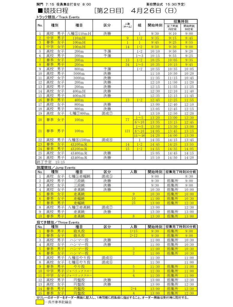地区総体のタイムテーブルは記録会種目には支障のないよう組んでいますが、選手のみなさんは高校種目と間違えないよう、個人・団体でご準備ください