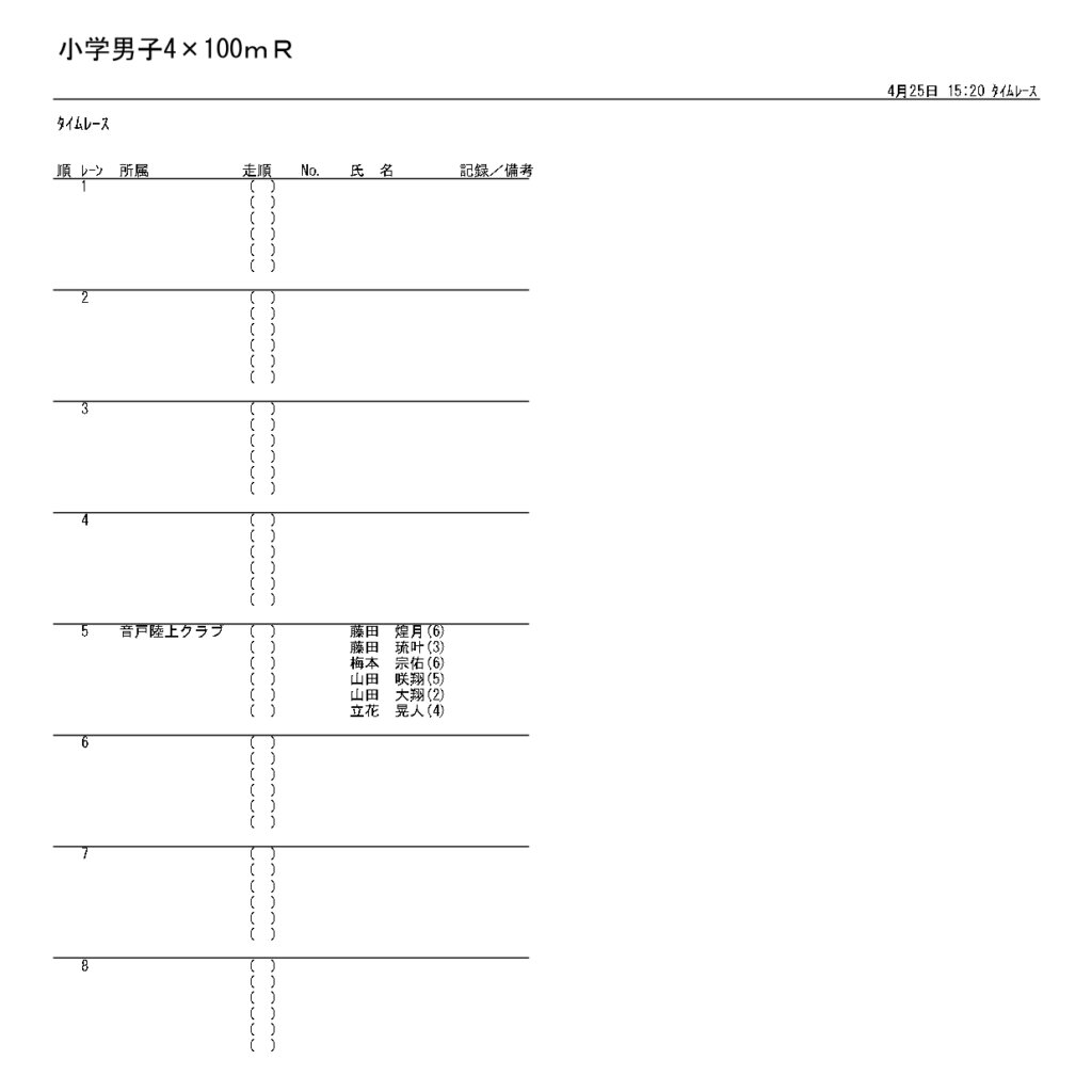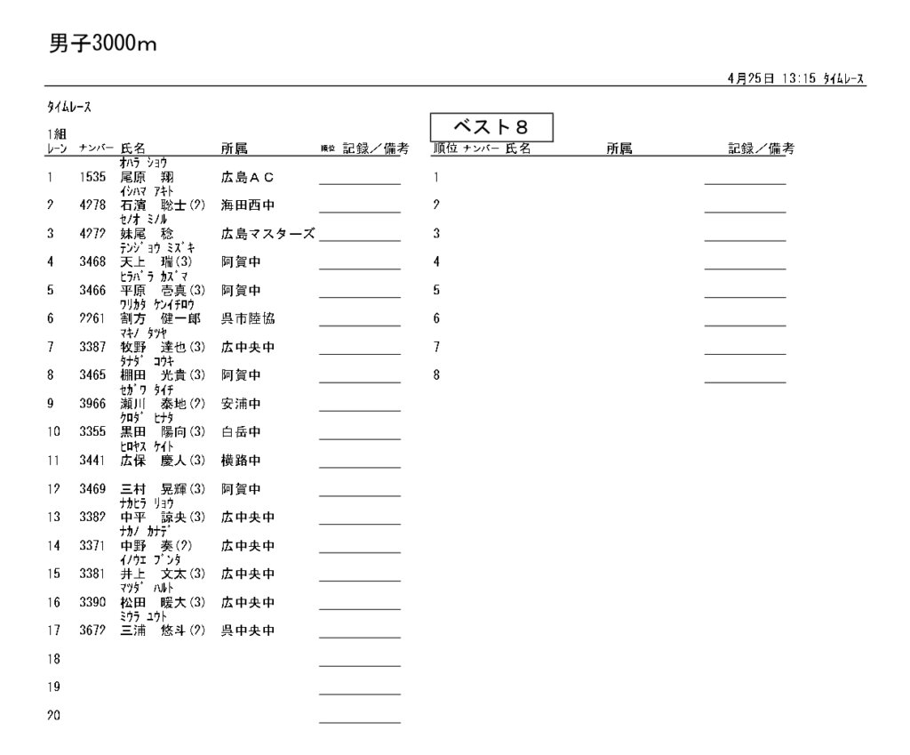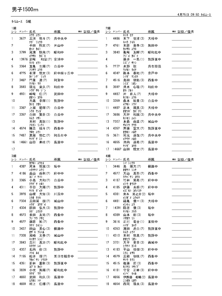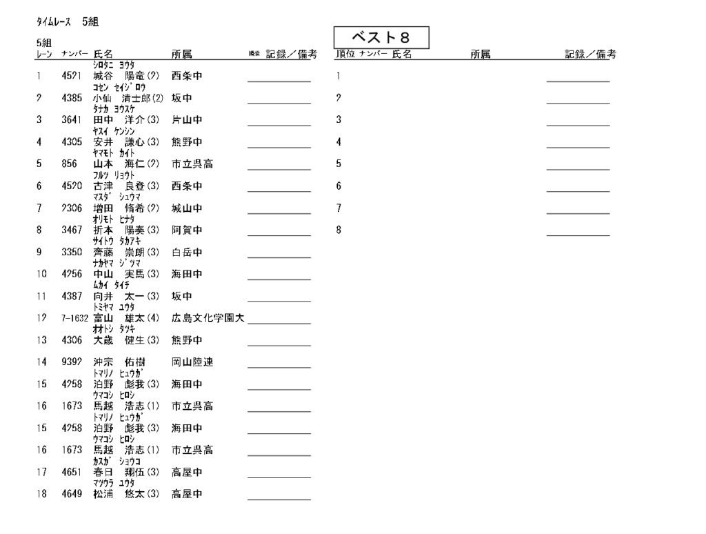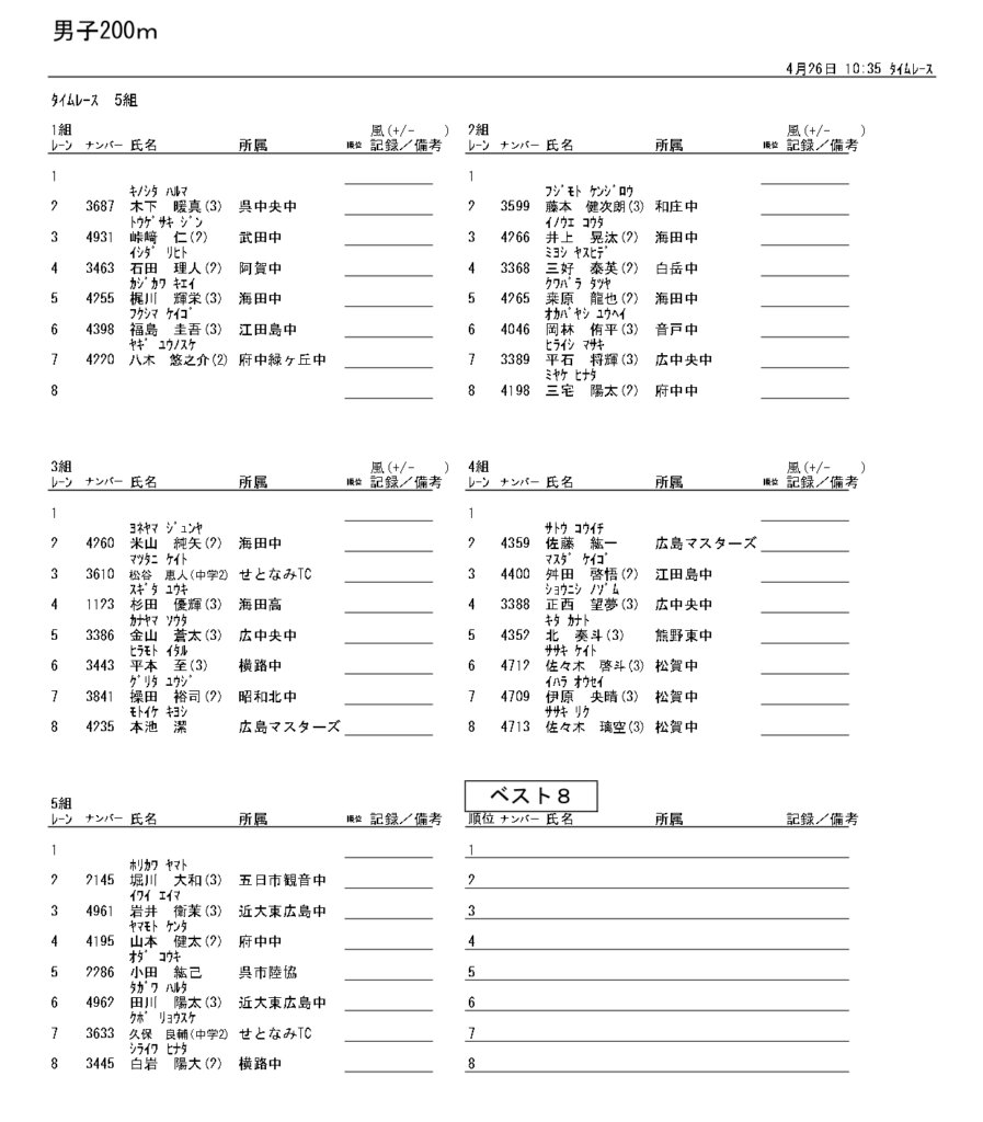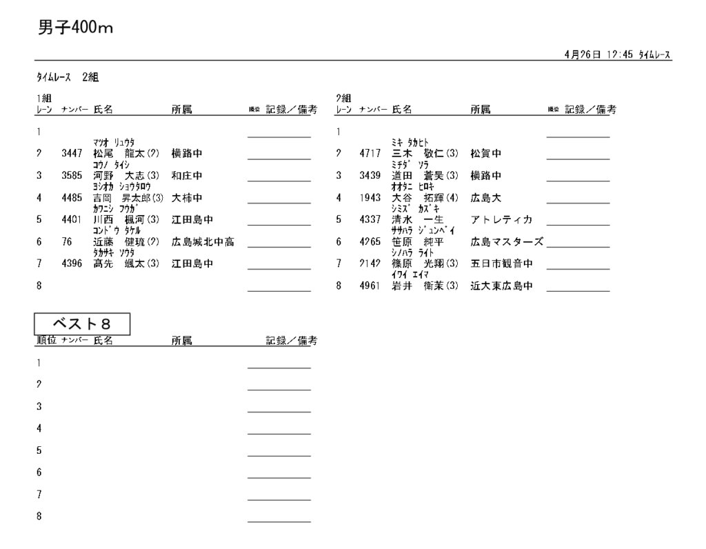 地区総体のタイムテーブルは記録会種目には支障のないよう組んでいますが、選手のみなさんは高校種目と間違えないよう、個人・団体でご準備ください